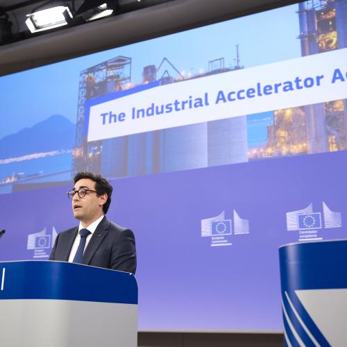 Comisia Europeană a adoptat o propunere de regulament denumită Industrial Accelerator Act, care introduce cerințe țintite și proporționale „Made in EU” și cu emisii reduse pentru achiziții publice și scheme de sprijin, stabilește un proces digital unic de autorizare pentru proiecte de producție și introduce condiții pentru investiții străine majore în sectoare strategice, într-o inițiativă care urmărește să crească ponderea industriei în PIB-ul UE la 20% până în 2035.